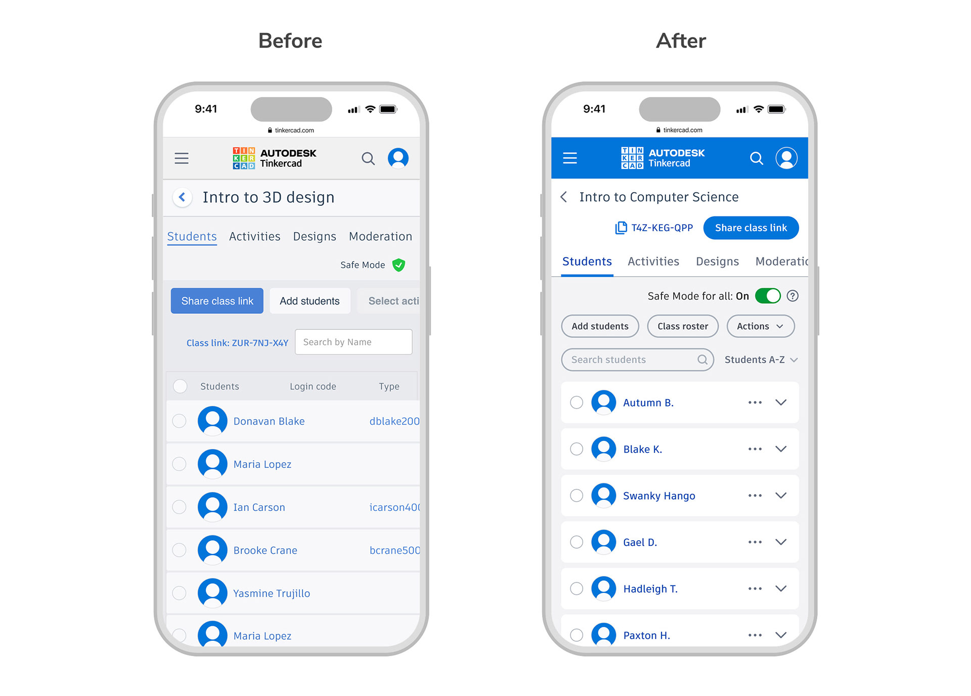 Over a multi-phase initiative spanning about 12 months, I served as the design lead and strategic owner for Tinkercad Classrooms, a core workflow supporting teachers using Tinkercad in educational settings.