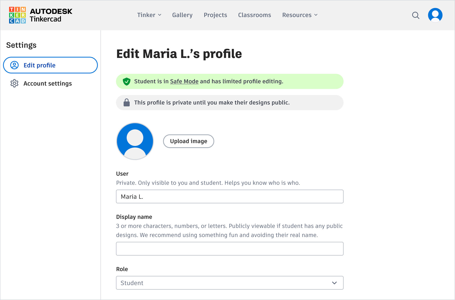 Separate private names and public display names add flexibility for teachers, and new profile banners add clarity around visibility states.